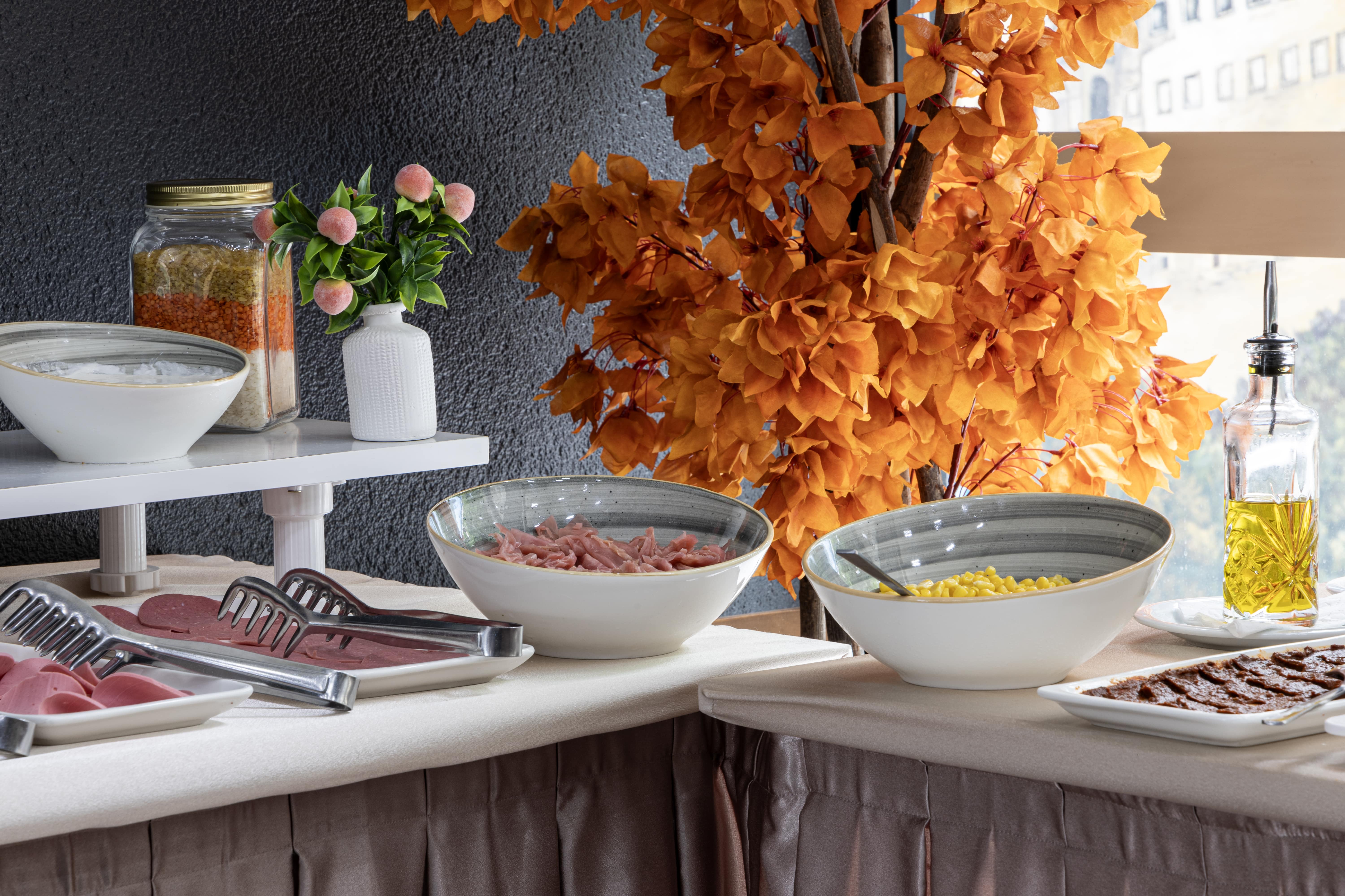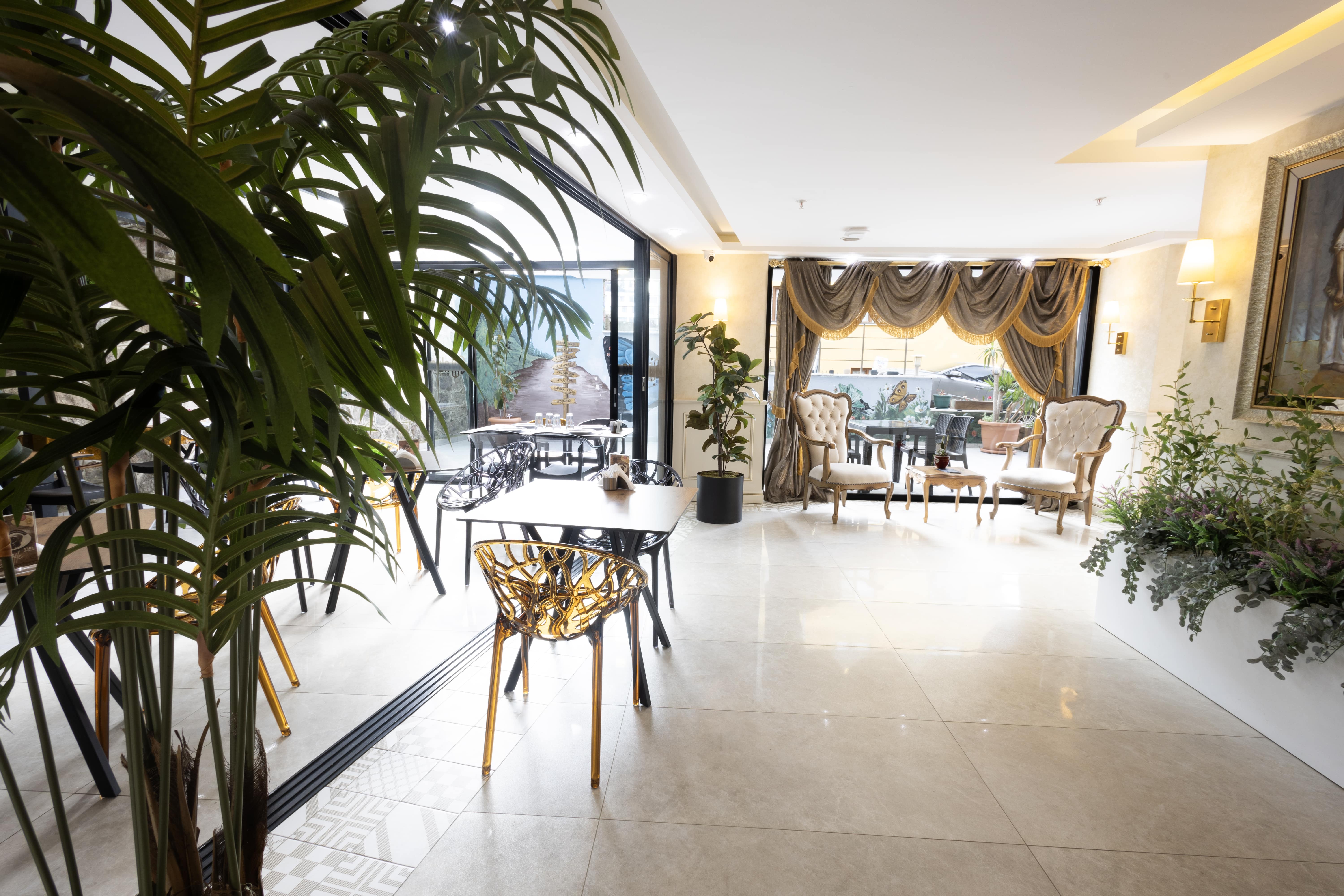 Günlük kahvaltı yöresel lezzetlerle açık büfe olarak servis edilmektedir. Otelde ayrıca geleneksel ve dünya mutfaklarından yemekler sunan bir A la Carte restorant ve oda servisi bulunmaktadır. Tesiste ücretli olarak çamaşırhane ve ütü servisi hizmeti de vardır. Tesisimiz 7/24 güvenlik kamerası ile izlenmekte olup ayrıca 24 saat açık resepsiyon mevcuttur. Hızlı C/in ve C/out işlemlerinizi saat fark etmeksizin tesisimiz de yapabilirsiniz.