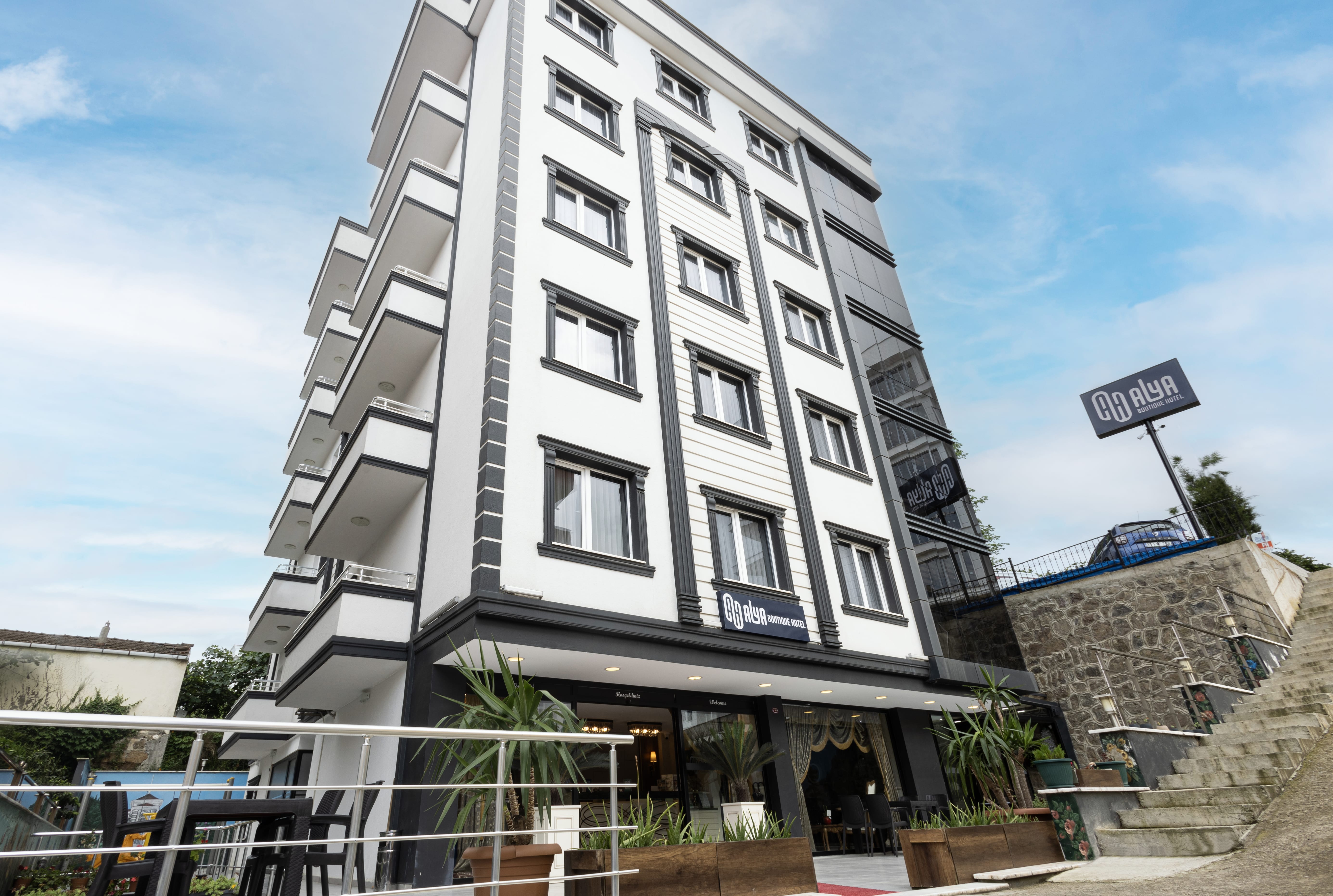 Trabzon Havalimanı'nın hemen karşısında yer alan Alya Hotel, modern olanaklara ve yerel mimarinin özelliklerine sahip, zevkli bir şekilde dekore edilmiş odalar sunmaktadır. Tesisimiz de otopark ve bodrum katıda dahil toplam da 8 kattan oluşmakta ve her kata ulaşan 10 kişilik asansör bulunmaktadır. Tesis bünyesinde ücretsiz özel otopark mevcuttur.