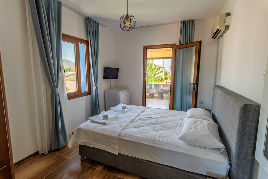 Tüm Odalarımızda standart olarak : Buklet Set, Klima, Buzdolabı, LCD TV, Uydu Yayını, Ücretsiz WiFi, Banyo, Saç Kurutma Makinesi ve Balkon.