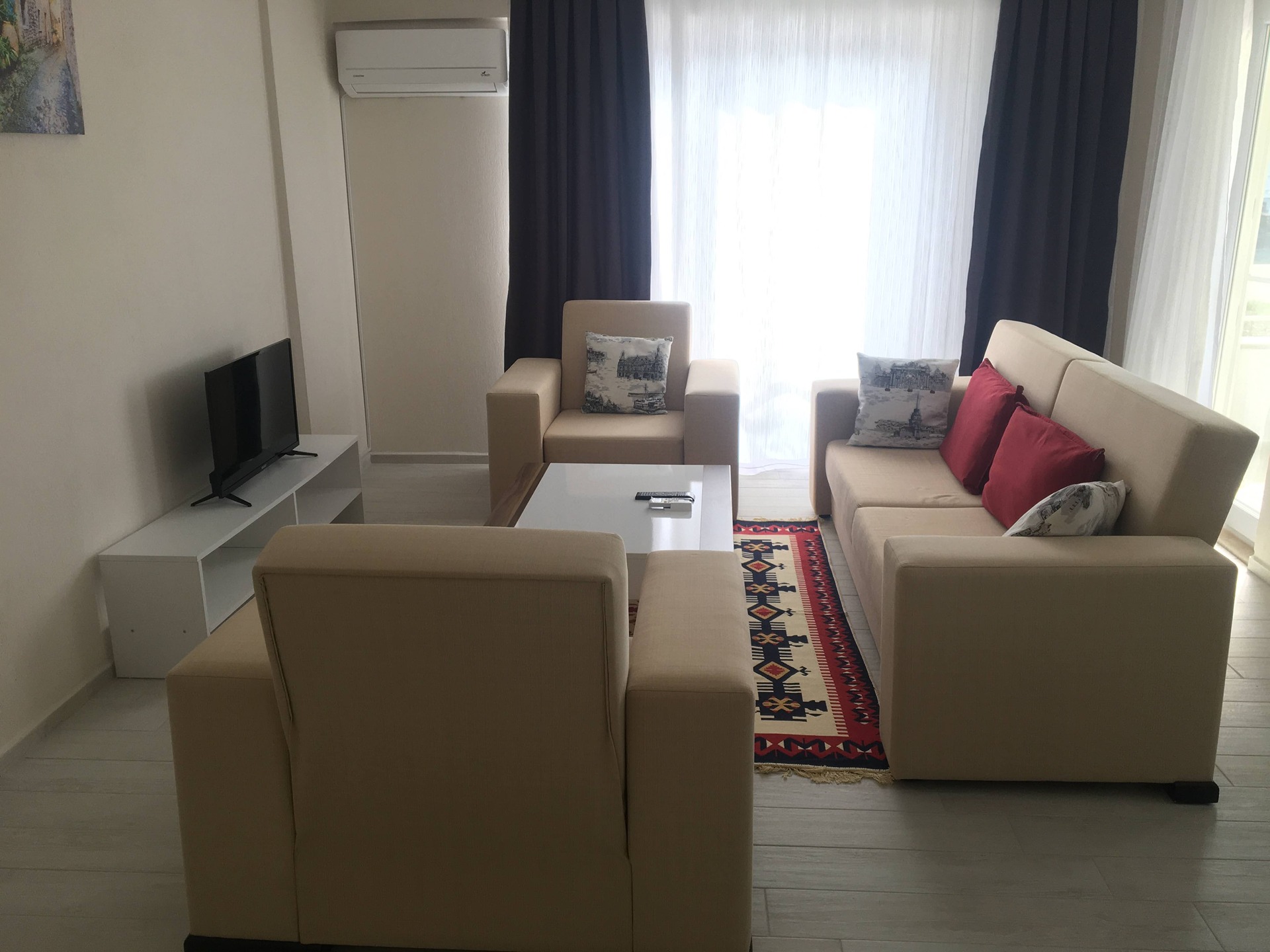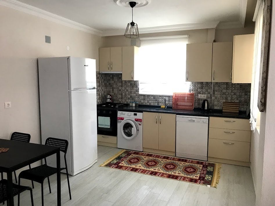 • Her daire ünitesi 98 m2 olup 2 yatak odası ve özel Amerikan mutfak-salon konseptine sahiptir. Ankastre ocak takımı, çamaşır makinesi, bulaşık makinesi, ütü - ütü masası, çift kapılı buzdolabı, 4 kişilik yemek masası takımı, geniş balkon ve balkonda 4 kişilik masa sandalye takımı mevcuttur.