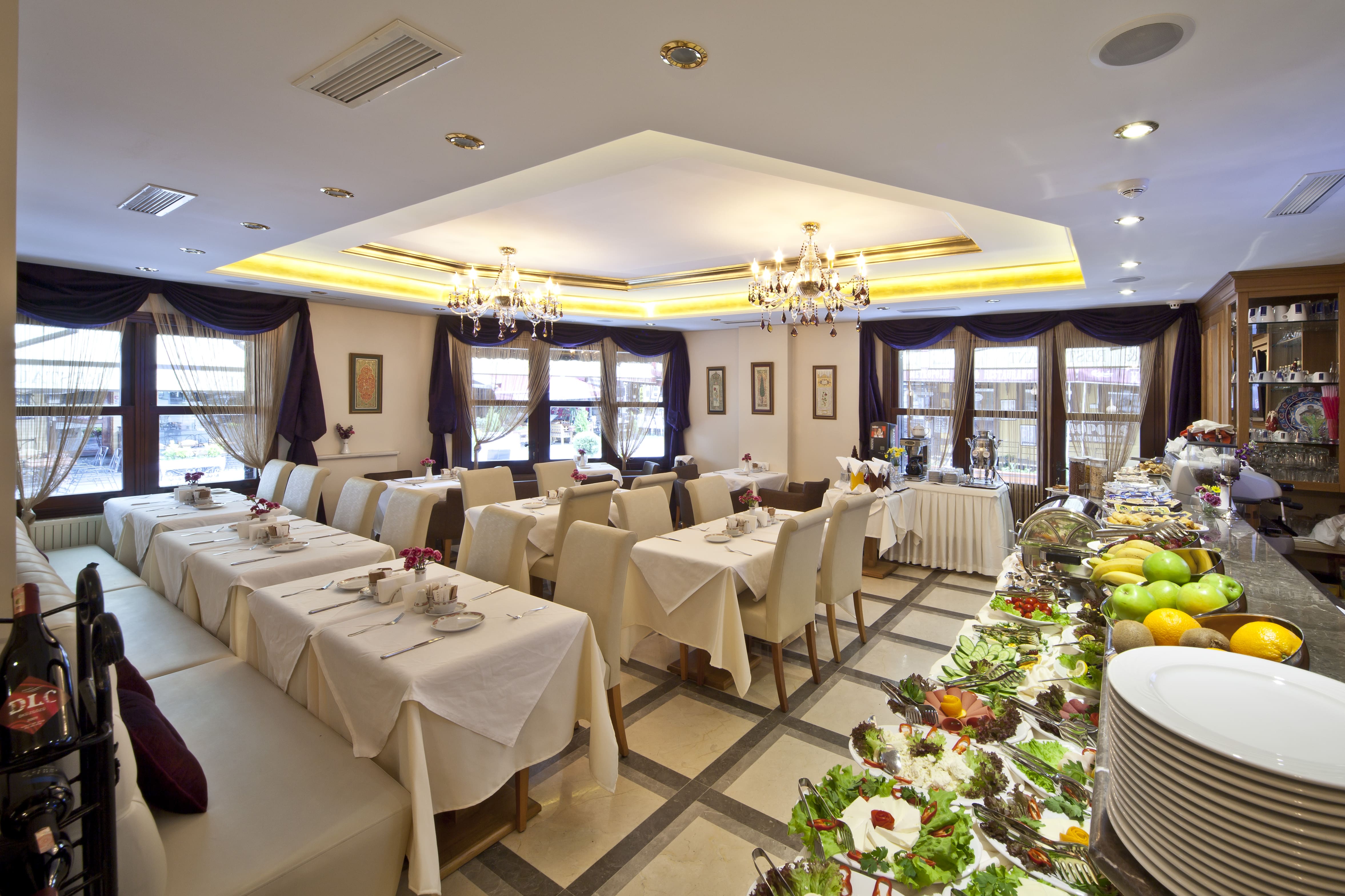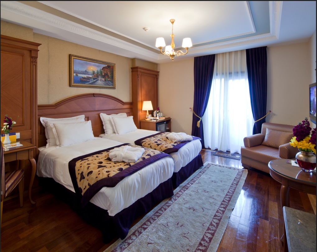 Fully renovated historical mansion, this luxury hotel comprises a total of 22 Suites spread over 5 floors and located in the centre of Sultanahmet facing the Marmara Sea, Hagia Sophia, and Blue Mosque.Guests may make use of the foyer with 24-hour reception desk, concierge, a currency exchange facility and a lift. There is also a café, a TV room, an air-conditioned à la carte restaurant, a conference room, a public Internet terminal (WLAN) as well as Health Club ,Fitness Center,Turkish Hamam and Steam Room, Sauna and laundry services are on offer.