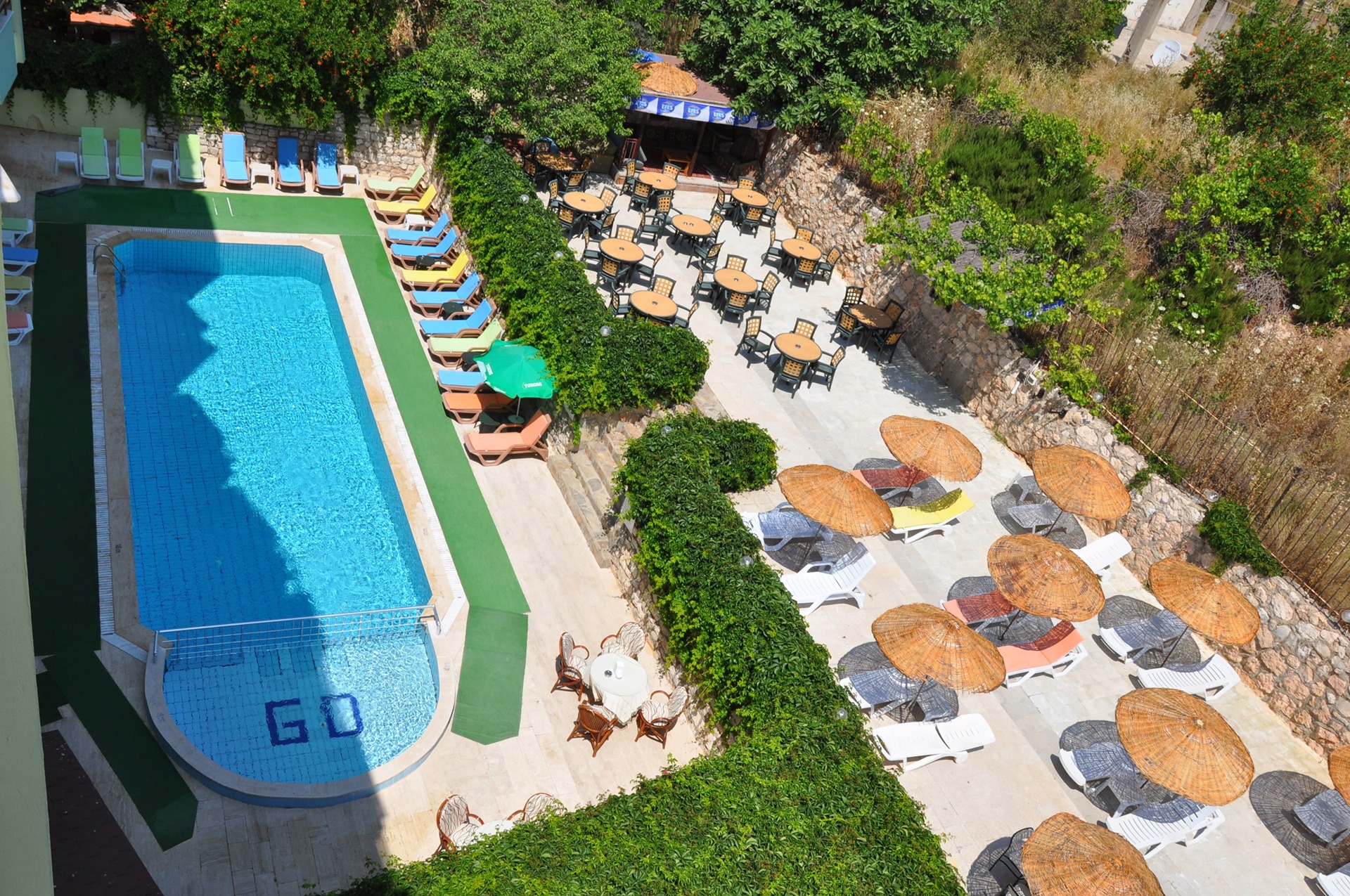 Bahçenin yanındaki açık yemek alanında Türk ve dünya mutfaklarından yemekler servis edilmektedir. Otelde ayrıca içecek, kahve ve dondurma servisi yapan bir açık hava barı bulunmaktadır.