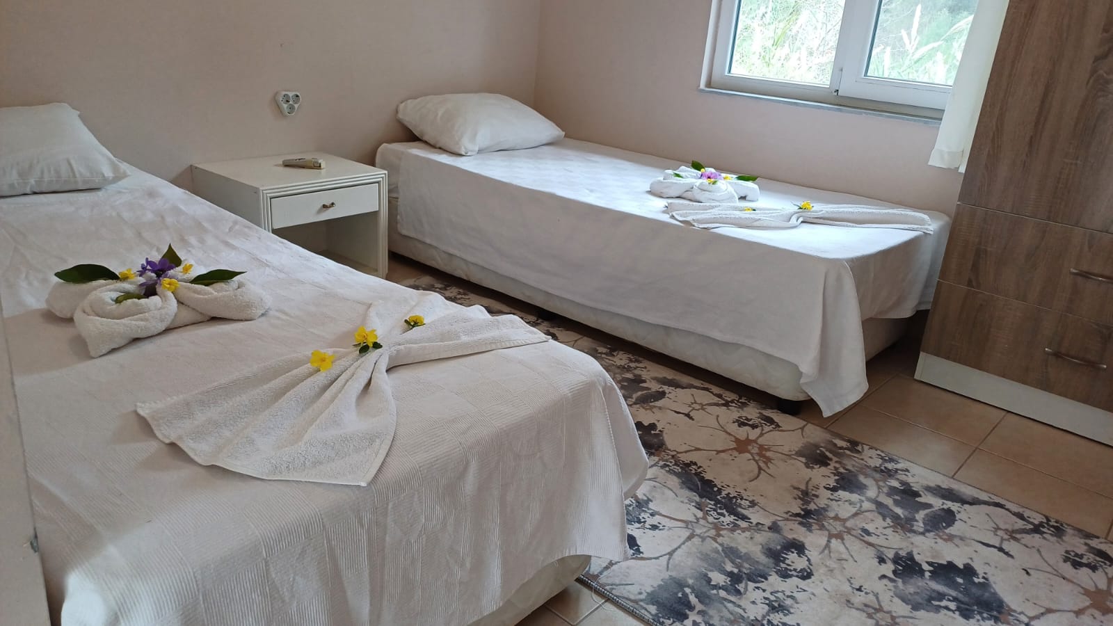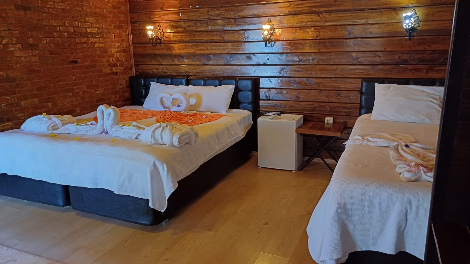 Her bir bungalov aile evimiz, bir adet çift kişilik yatak ve iki adet tek kişilik yatak ile donatılmış, böylece ailenizin tüm üyeleri için rahat bir uyku alanı sağlanmıştır. Ayrıca, evlerimizin her birinde modern bir klima sistemi, özel WC ve duş alanı bulunmakta, 24 saat sıcak su imkanı ile konforunuz düşünülmüştür.