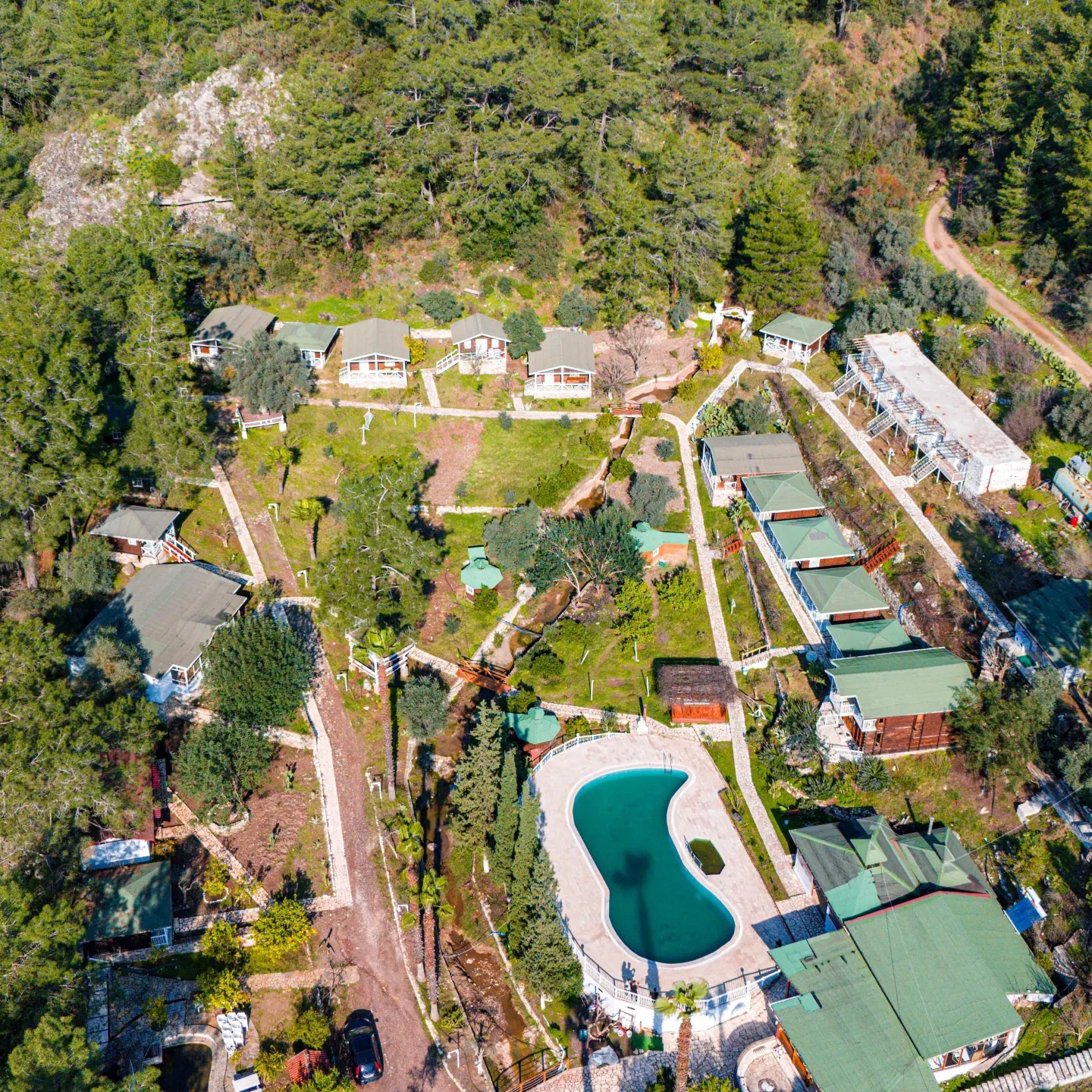 Olympos Angels Garden Hotel Bungalov Aile Evleri, doğanın kalbinde, huzurlu ve konforlu bir tatil deneyimi sunuyor. Aileler için özel olarak tasarlanmış bu bungalov tipi ağaç evlerimiz, doğa ile iç içe bir yaşam alanı sağlayarak eşsiz bir atmosfer yaratıyor. Toplam 7 adet bulunan bu 48m² büyüklüğündeki evlerimiz, geniş ve ferah yapısıyla ailenizle rahatça vakit geçirebileceğiniz bir ortam sunuyor.