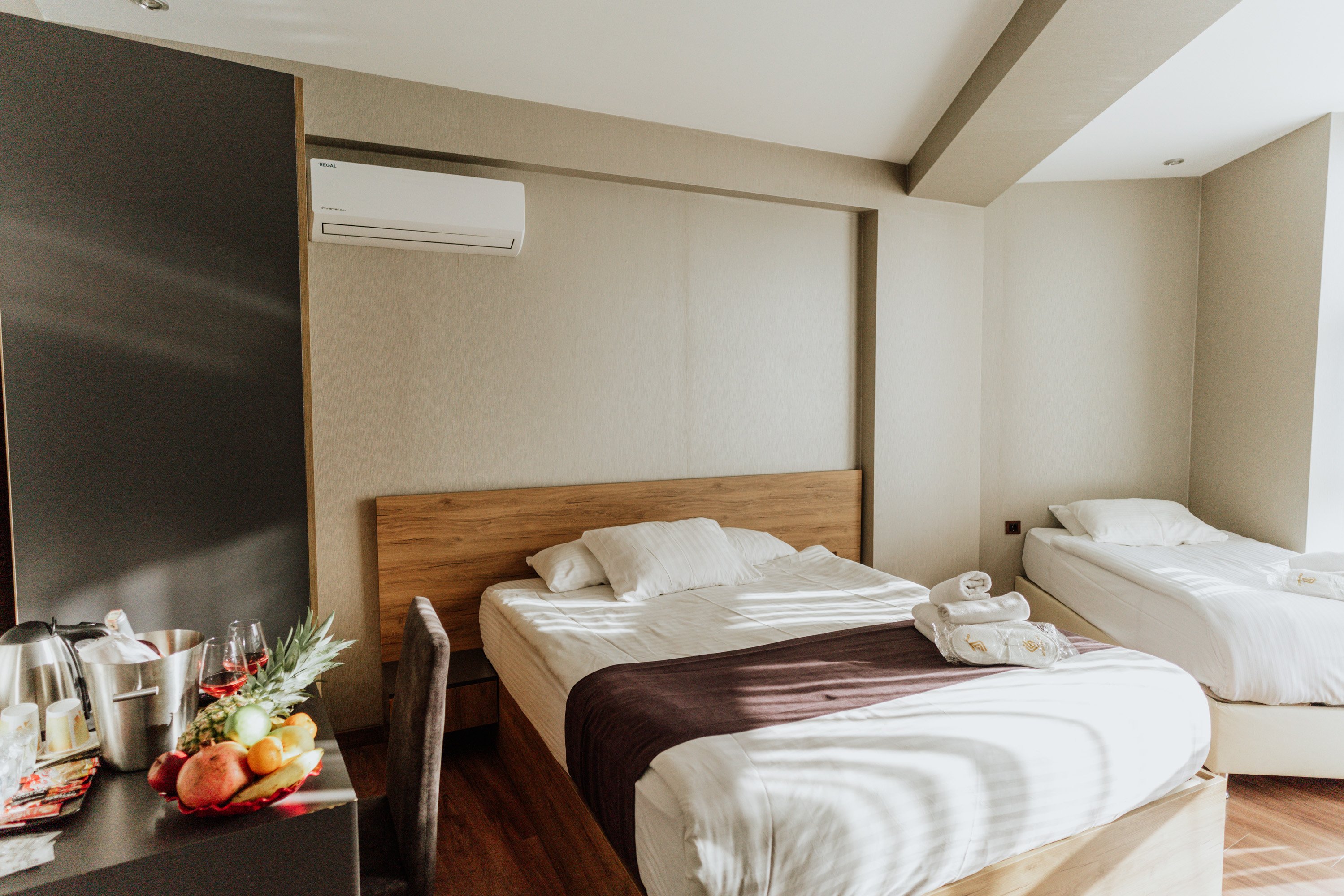 Göncü Grup bünyesinde bulunan, sade ve zarif olarak döşenmiş konuk odalarımız rahat ve konforlu bir şekilde dinlenmek için dizayn edilmiştir. Hem iş hem de kültürel gezi amaçlı seyahat edenler için ideal olan, park ve şehir manzaralı şık yeni odalarımız kaliteli mobilyalar, banyolar, duşa kabin ve lüks olanaklarla tamamlanmıştır.