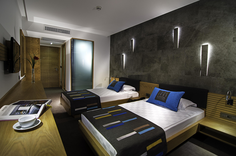 Bütün Delüx odalarımız nefes kesici 180° ‘lik açıyla izleyebileceğiniz Ege Denizi ve Güvercin Ada manzarasına sahip. Eşsiz modern ve kullanışlı tasarımı ve Yataş© Premier King Size yataklarımız size son derece konforlu bir konaklama sağlayacaktır.