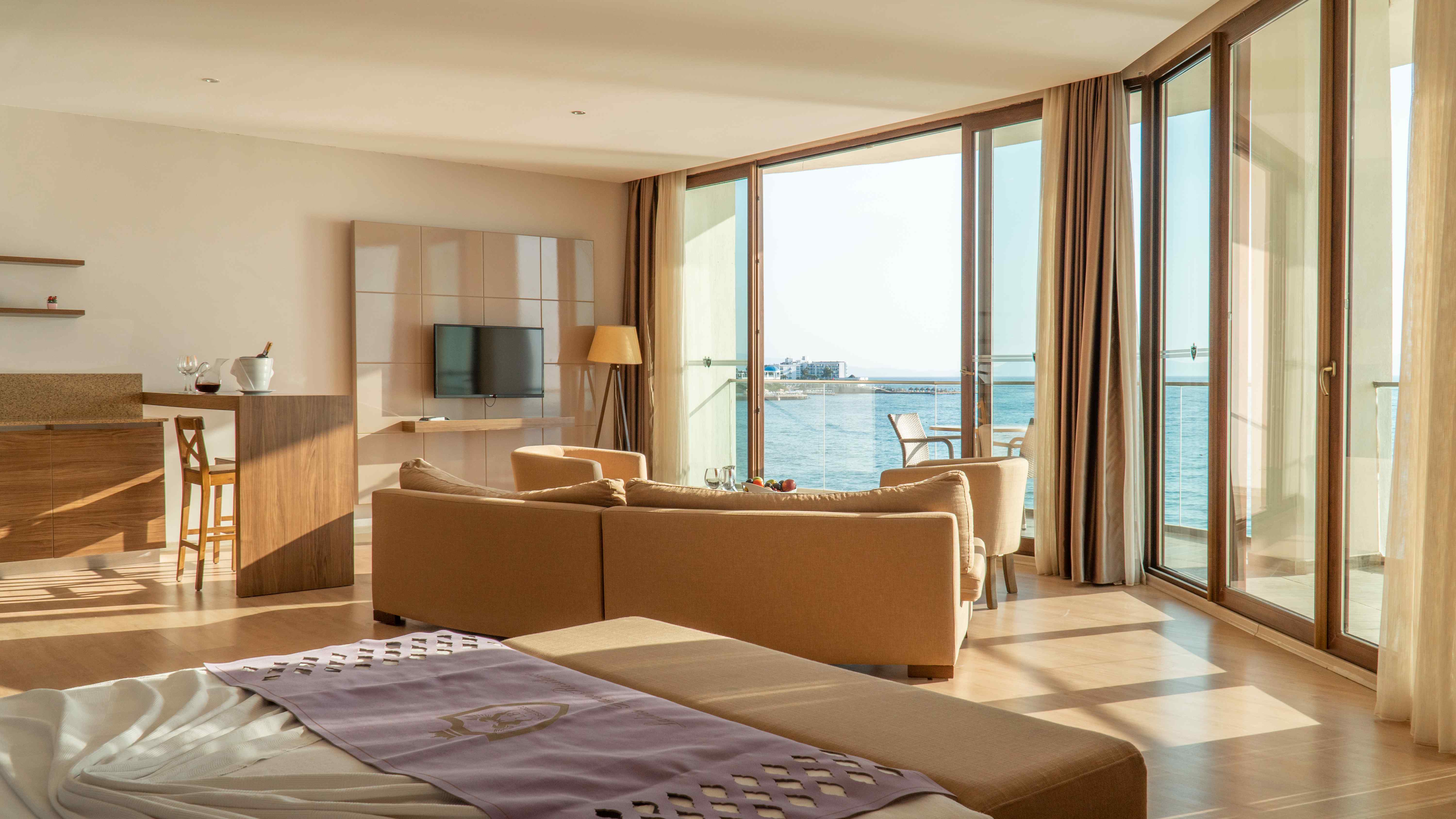 EXCELLENT SMALL (Balayı odası) 70 M² kral yatak olarak hazırlanmış olup, egzotik okyanus manzarasına sahiptir.