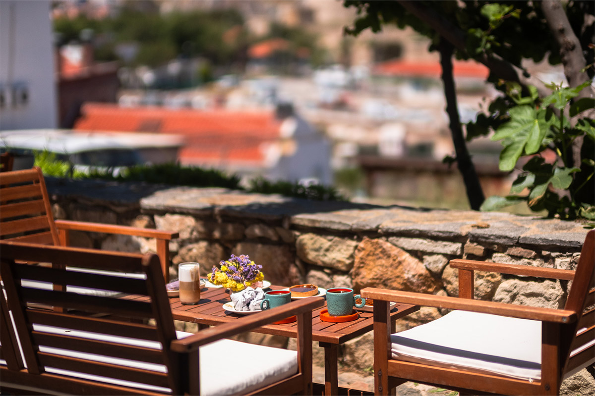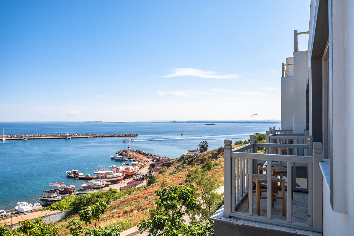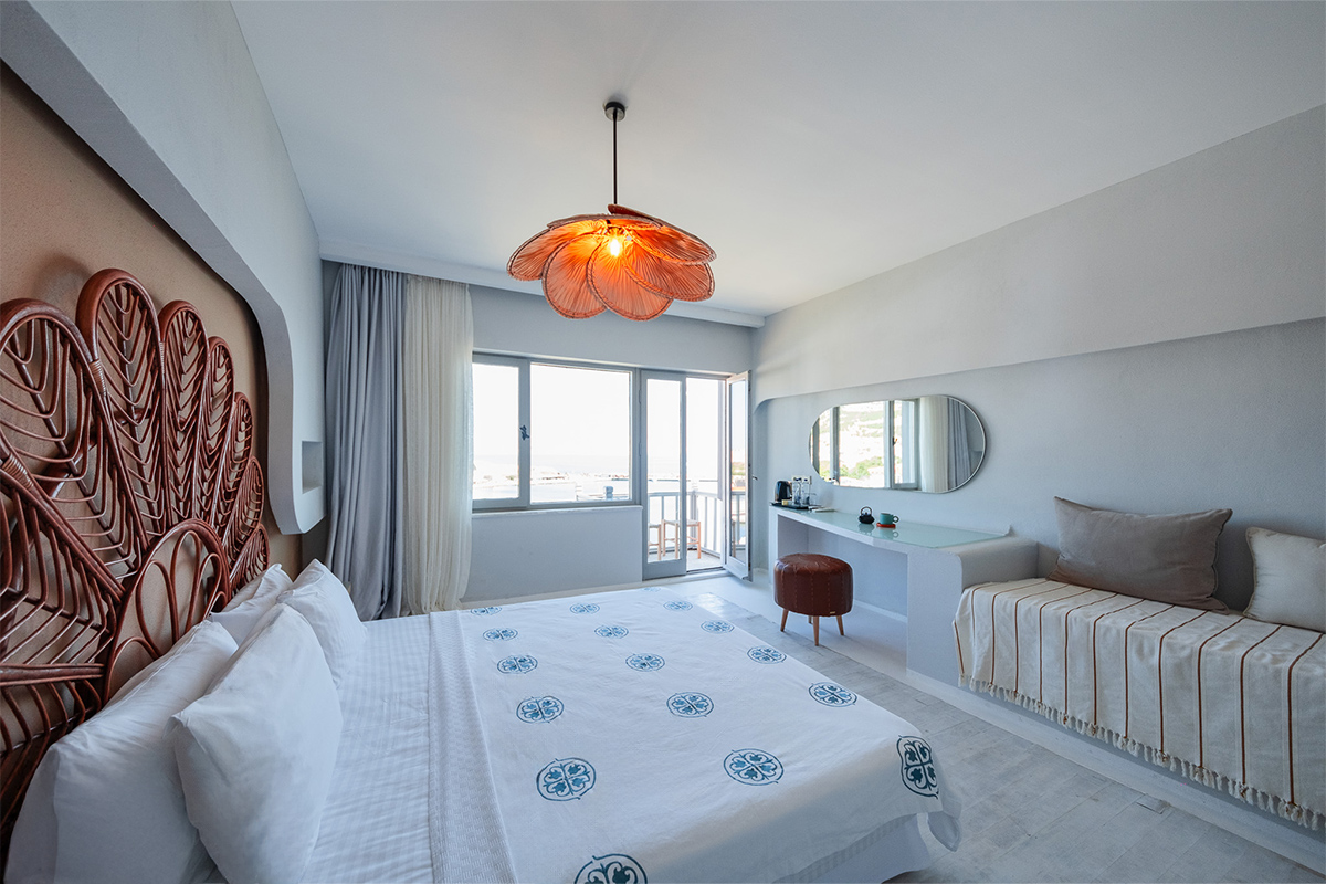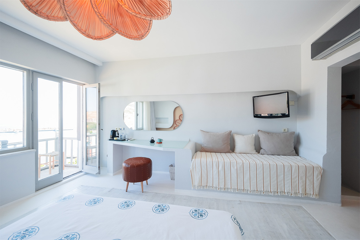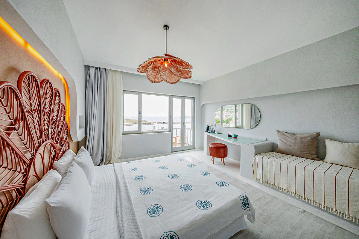 Doğallık, sadelik ve manzarayla bütünleşen bu odada Bozcaada’yı en güzel haliyle deneyimleyin.