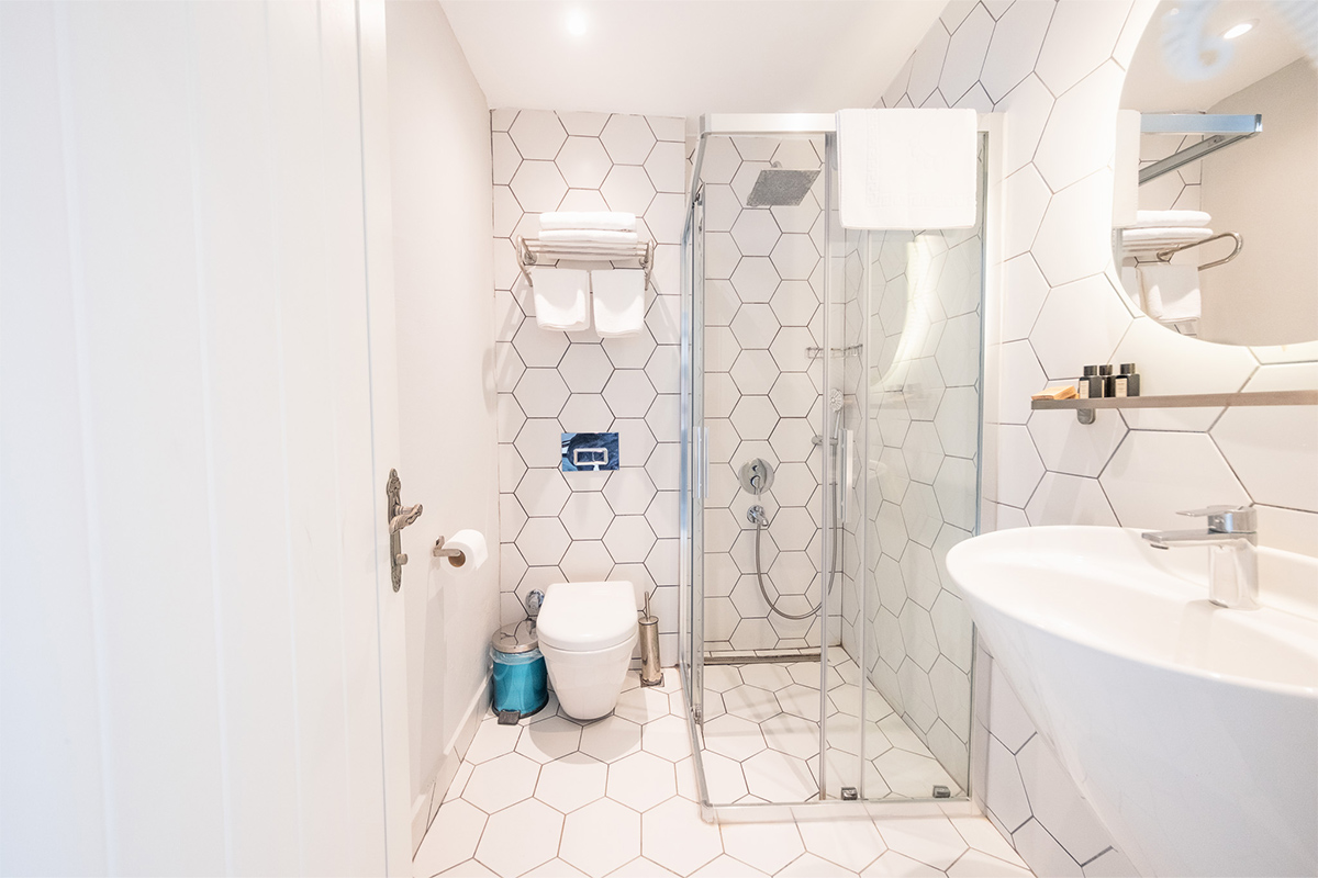Modern çizgilerle döşenmiş odada çift kişilik yatak, klima, minibar, ücretsiz Wi-Fi, saç kurutma makinesi ve banyo malzemeleri gibi tüm temel olanaklar yer alır.