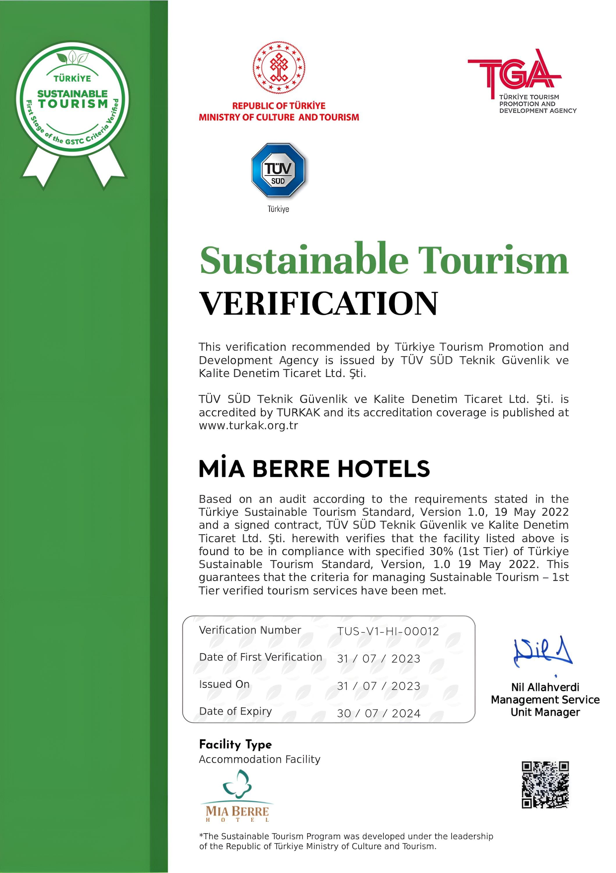 2014 yılı Ağustos ayında kapılarını açan Mia Berre Hotel, kusursuz hizmet anlayışı ile misafirlerini ağırlamaya başladı. Mia Berre Hotel, İstanbu'un en nezih semtlerinden bir olan Fulya'da olması itibari ile, iş merkezleri, kongre merkezleri, sağlık kuruluşları ve Nişantaşı, Taksim gibi Türkiye’nin en renkli alışveriş caddelerine, kültür ve sanat merkezlerine yakınlığı sayesinde eşsiz bir lokasyondadır. İstanbul’un en çok tercih edilen ulaşım araçları, metro ve metrobüse ise sadece 5 dakika mesafededir. Türk misafirperverliğini temel esas alan Mia Berre Hotel, bünyesinde yer alan Mia Berre Restaurant dünya mutfağına sahip menüsü ile 7 gün 24 saat misafirlerine hizmet vermektedir. 115 oda ve 230 yatak kapasitesi ile hizmet veren Mia Berre Hotel donanımlı salonu sayesinde kurumsal toplantılar için de olanak sağlamaktadır. Mia Berre Hotelin klimalı odaları, şık ve modern bir iç tasarıma sahiptir. Tüm odalarda çay ve kahve yapma imkanı, ücretsiz Wi-Fi, LCD TV’ler ve minibar vardır.