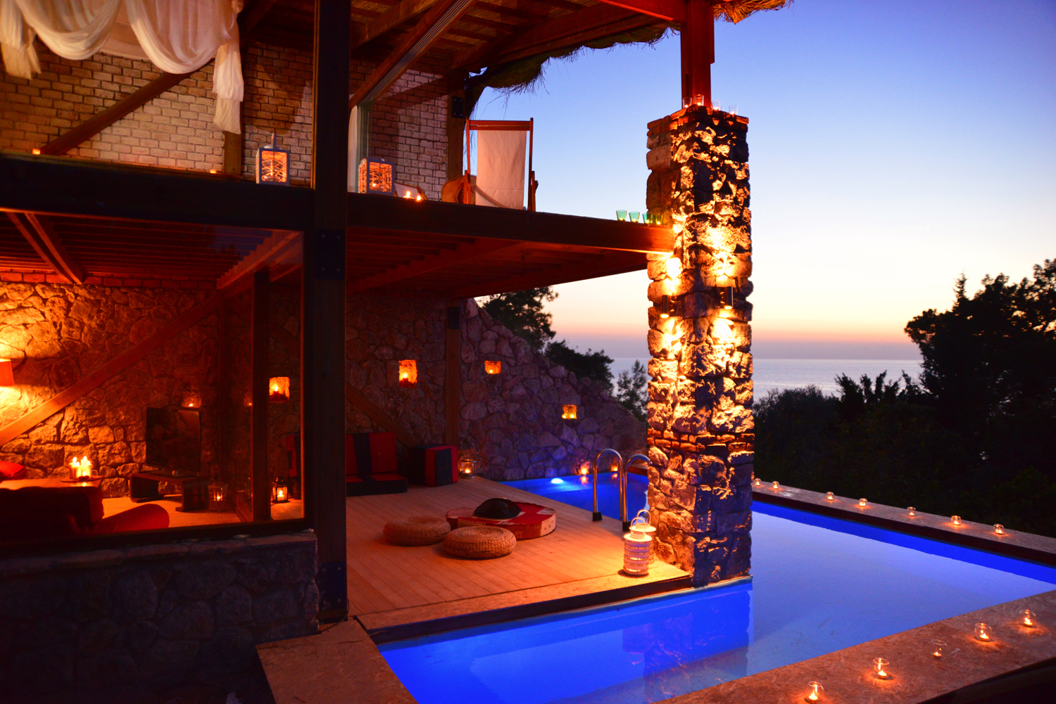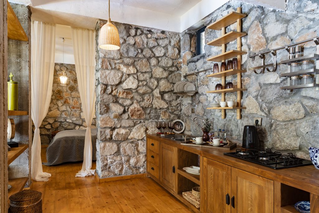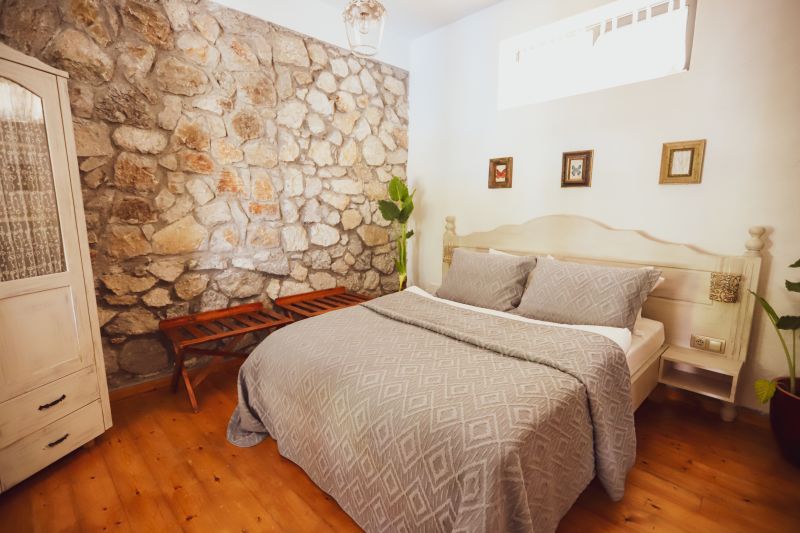 Taş evlerimiz arasında sadece bir tane bulunan, terası eşsiz bir manzaraya sahip odanızda; Akdeniz’in üstüne vuran güneş ışıltılarıyla uyanacağınız, herkesten uzak bir şekilde, kimse tarafından rahatsız edilmeden terasınızda güneşlenirken ya da jakuzinizde keyif yaparken, arkanızdaki ormanın kokusunu içinize çekip, denizin sonsuzluğuna bırakacaksınız nefesinizi.