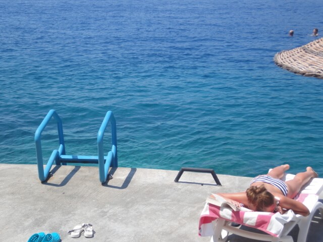 30 m2, tam deniz manzaralı ve balkonlu, geniş ve ferah duşakabin ile tamami mermer 9 m2 banyo, yüksek kalite büyük çift kişilik yatak. Yataklı kanepe ve deri istirahat koltuğu ile oturma köşesi. Modern, özel tasarım ve üst düzey malzemeler, geniş ekran tv, internet ve netflix ile filmler, show’lar. Wi-fi, bağımsız ve özel klima , özel girişi ve asansör imkani ile eşsiz konumda.
