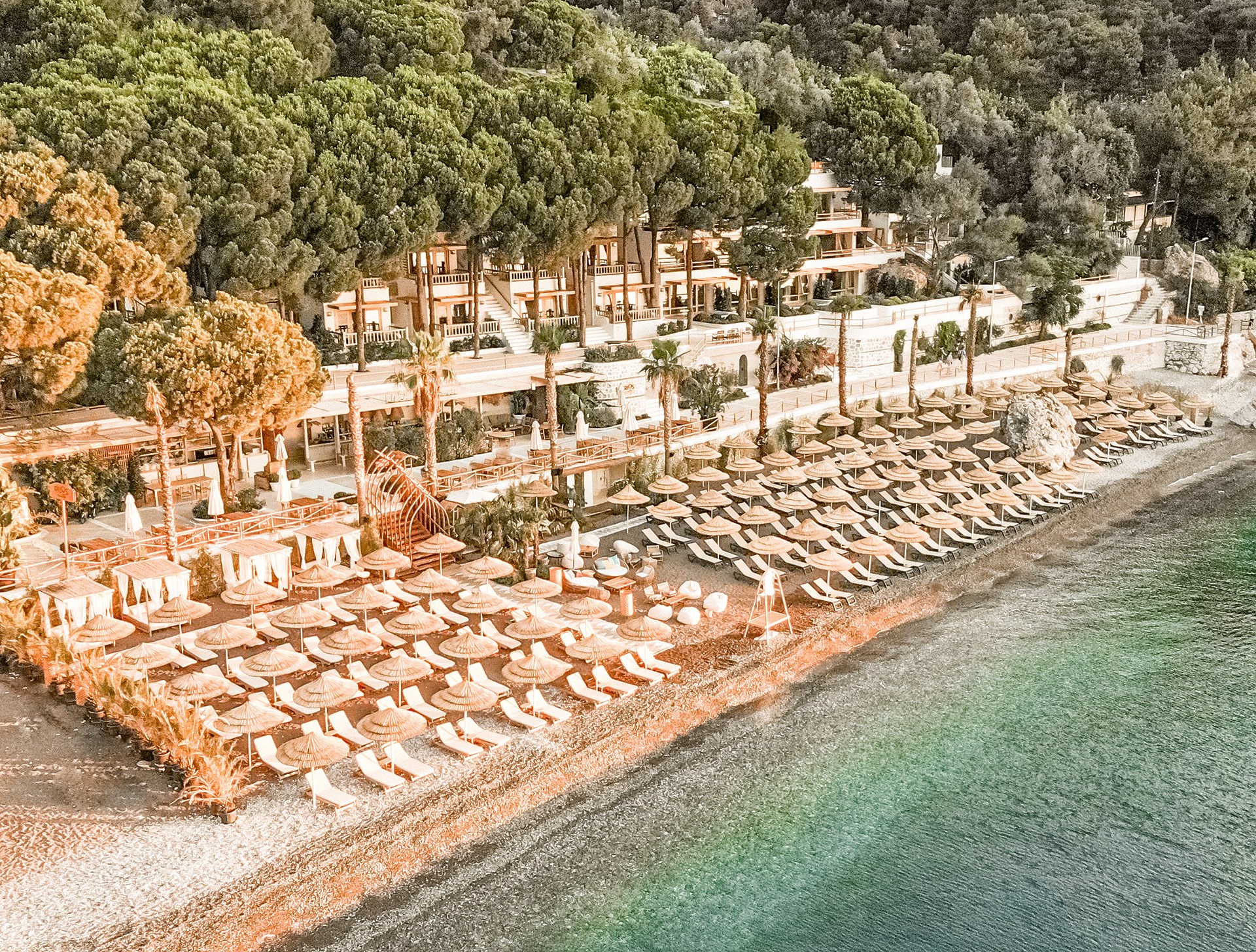 Küçük cennet parçamıza hoş geldiniz! Beach Clubımız, ayaklarınızın altındaki kum, şemsiye, masa ve Pilos plaj havluları eşliğinde ultra rahat şezlonglar sunmaktadır. Turunç koyunun turkuaz denizi üzerinde, çam ve dağ kekiği kokuları arasında yer almaktadır.