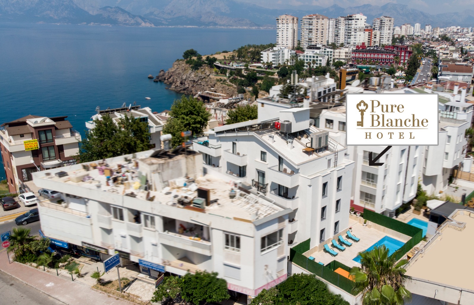 Antalya Lara bölgesinde 34 oda sayısı ile butik olarak hizmet veren bir tesisiz. Otelimiz Medicalpark Hastanesine 250 m, Antalya Havalimanına 7 km, Kundu-Örnekköy plajlarına 5 km, Terracity, Shemall, Laura Alışveriş merkezlerine yürüme mesafesindedir. Otelimizin hemen ön kısmından denize girebilir, birçok yeme içme mekanları ve cafelere yürüyerek ulaşım sağlayabilirsiniz.