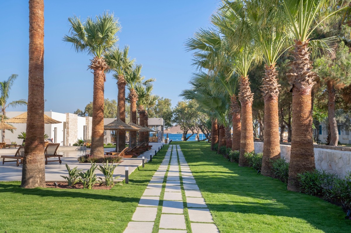 Regia Mare Beach Hotel, Bodrum yarımadasında, Bodrum ile özdeşleşen Ilgın ağaçları ile birlikte Ortakent bölgesinin en sakin, en güzel ve en manzaralı denizini barındırmaktadır.
