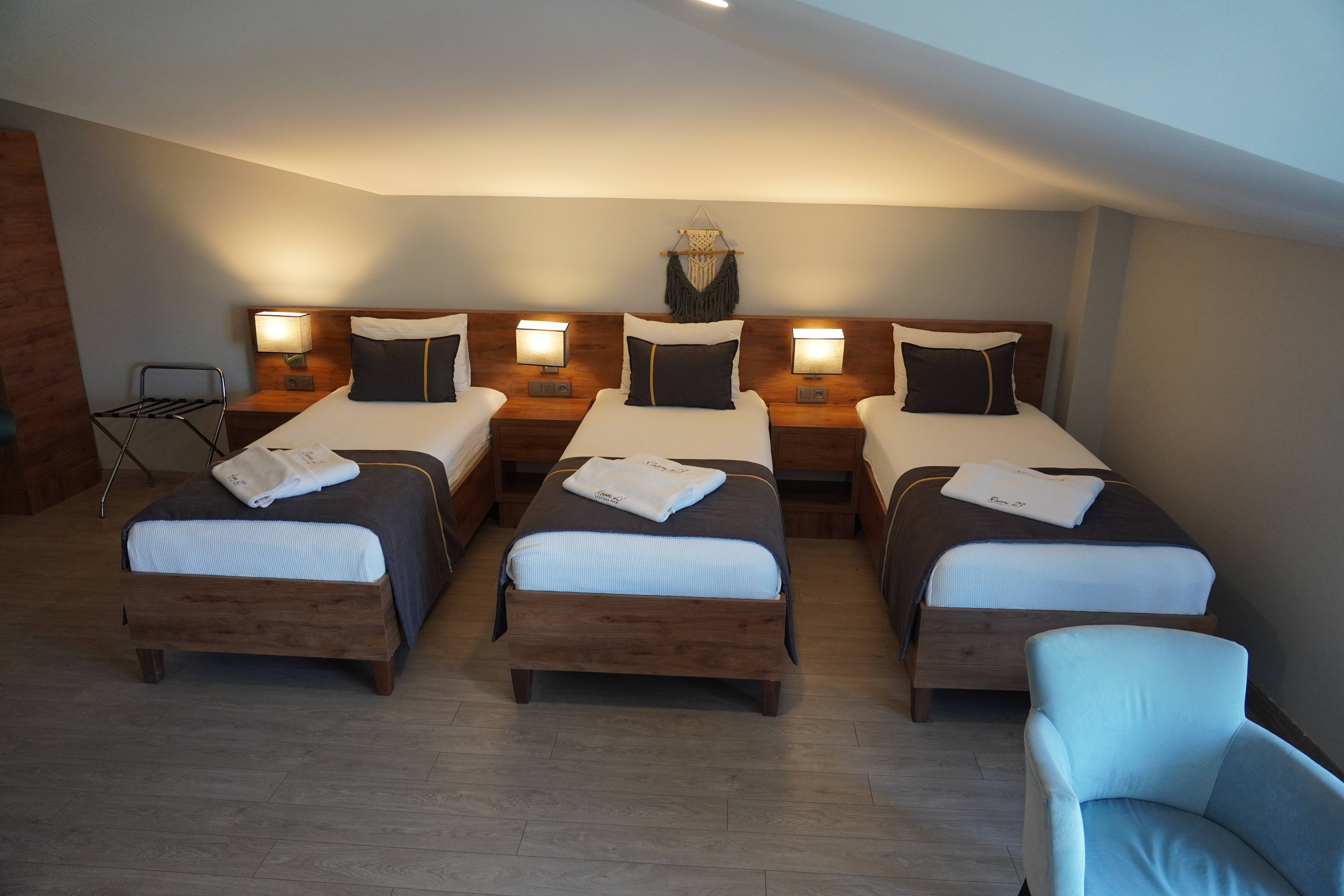 Akçay; artezyen kuyularından gelen sularının şifası yazın güneşle tatilcileri mest ederken, derinliklerinden gelen şifalı sularıyla hastalara şifa dağıtıyor. Birbirine zıt bu iki güzelliği Kazdağlarının tertemiz havası eşliğinde yaşamak isteyen misafirlerimizin her türlü konforunu düşünerek hazırladığımız Room23 ile sizi bambaşka yepyeni bir Akçay deneyimi bekliyor.