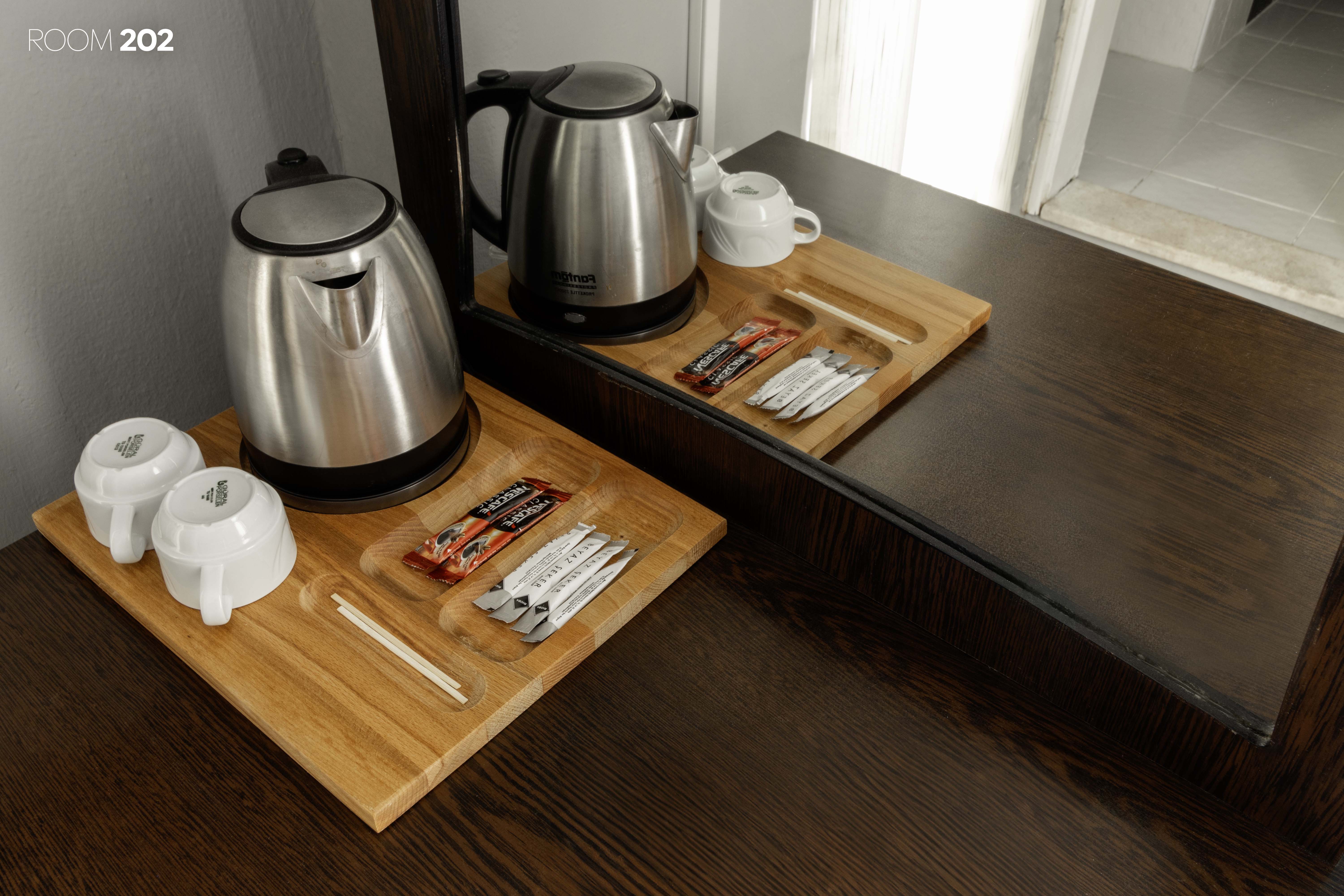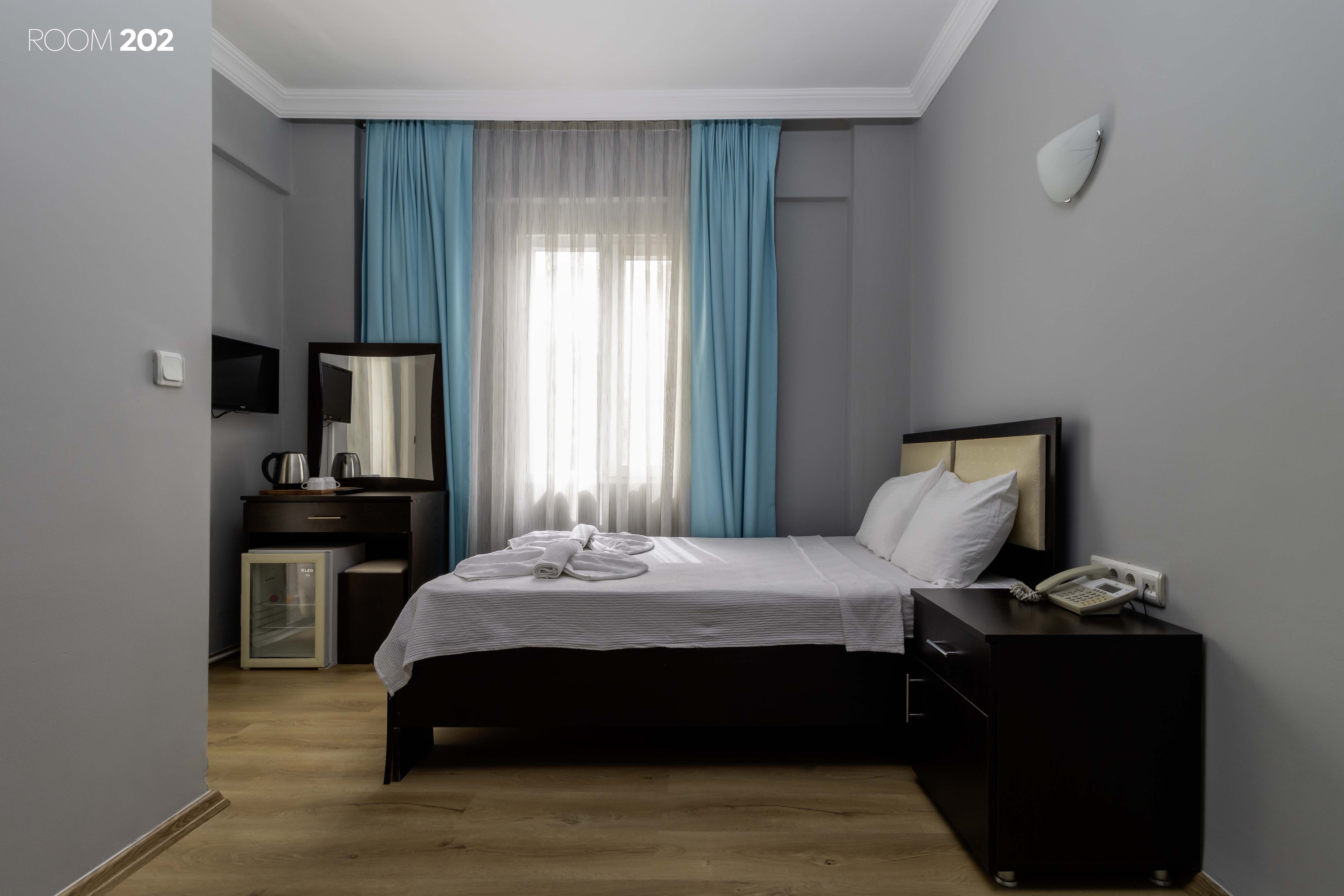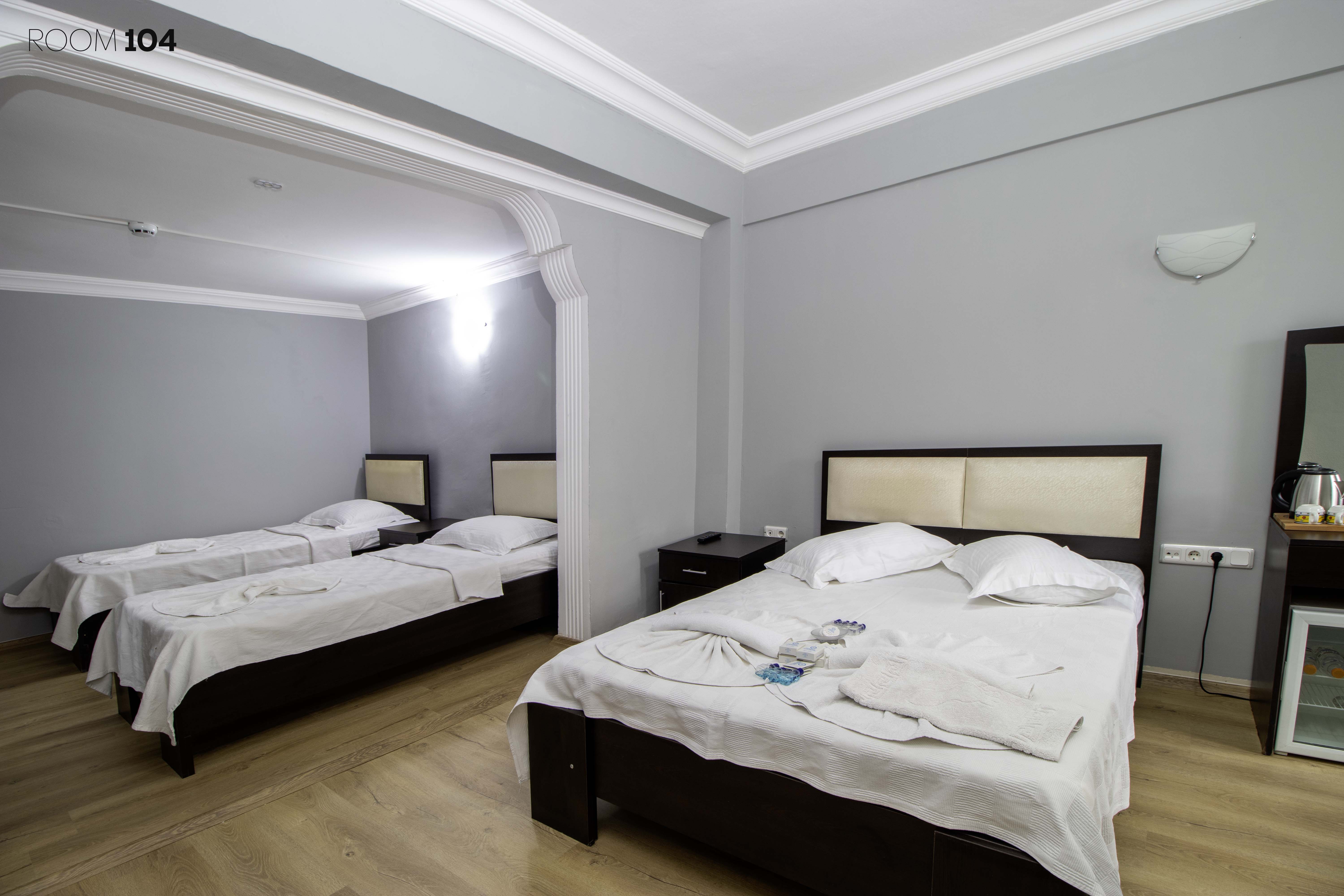 Tüm odalarımızın kendine özel tuvalet ve banyosu bulunmaktadır. Karşılama için kişi sayısına göre odalarımızda elektrikli su ısıtıcı, çay, kahve, şeker ve su bulunmaktadır. Kıyafetlerinizi asabileceğiniz kıyafet dolabı ve askıları mevcuttur. Değerli eşyalarınızı saklayabileceğiniz odaya özel kasalar her odada mevcuttur. El ve yüz havlusu, banyo havlusu, terlik ve ayak havlusu kişi sayısına göre odalarda bulunmaktadır. Her odada sipariş verebileceğiniz ve resepsiyon ile iletişime geçebileceğiniz telefon mevcuttur. Odalarımızın her birinde televizyon mevcuttur. Duş alanları çok sıkışık olmamakla beraber fotoğraflarda gördüğünüz gibi cam bir bölmeyle ayrılmış ve olabilecek maksimum ferahlık sağlanmıştır.