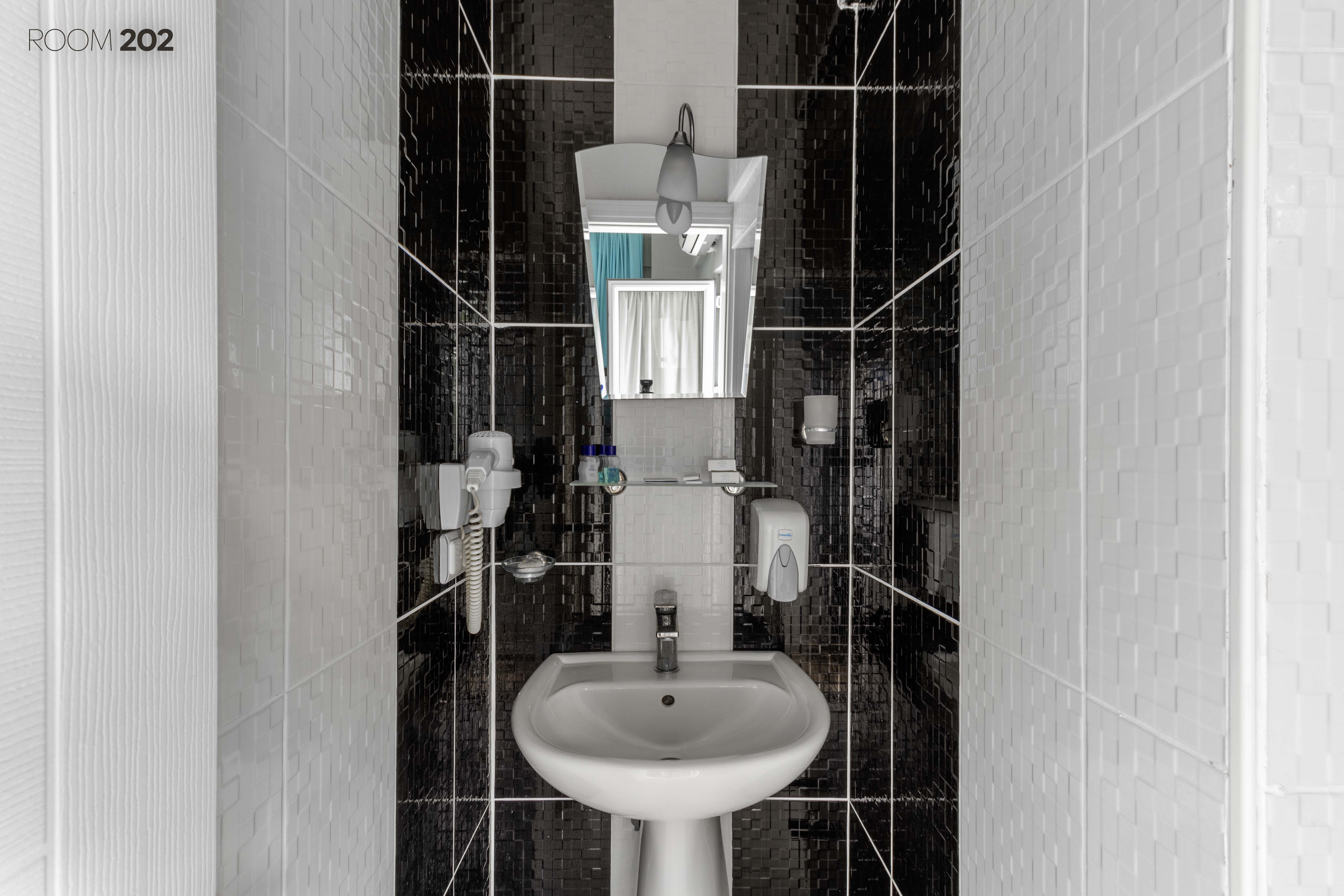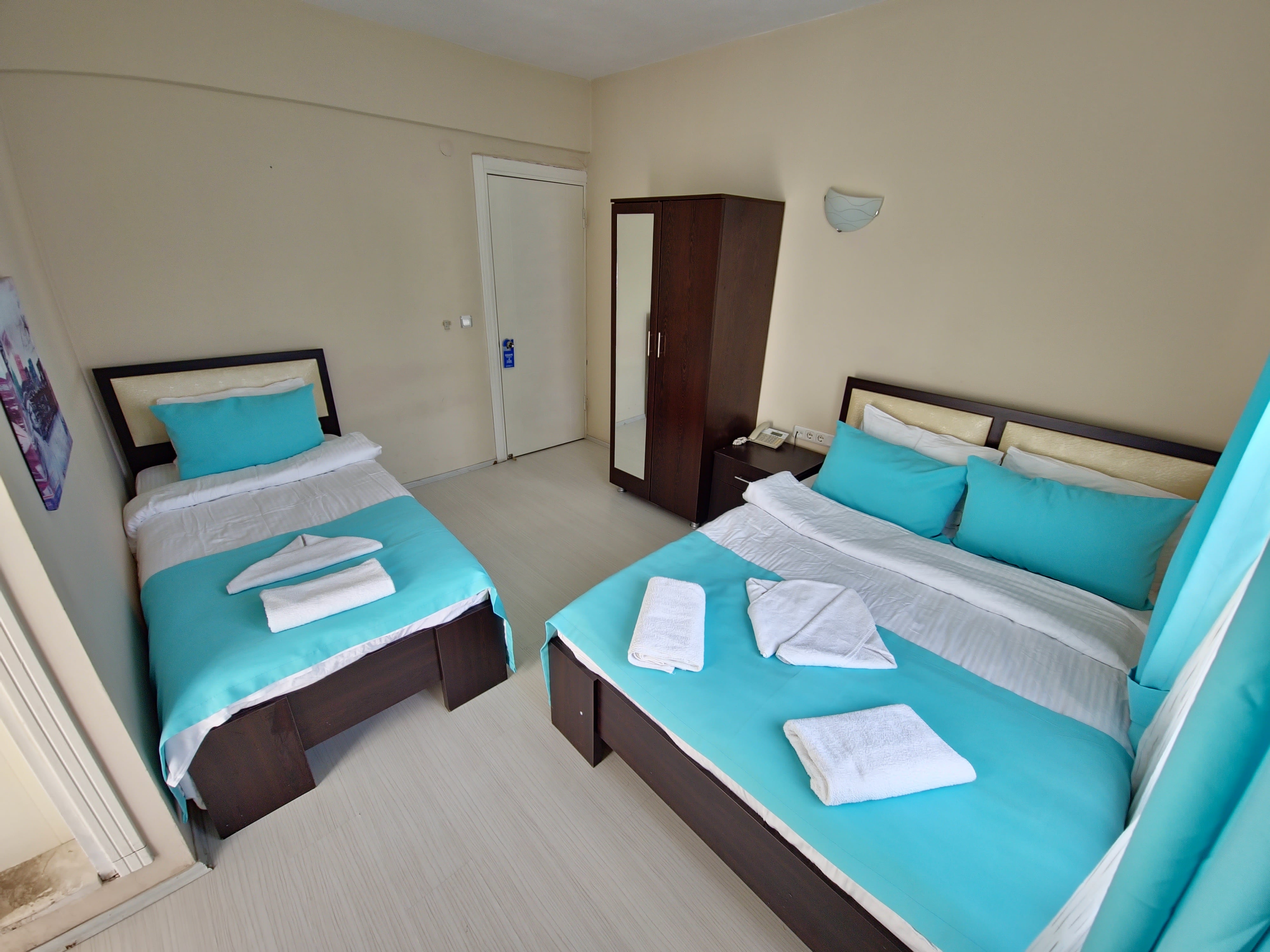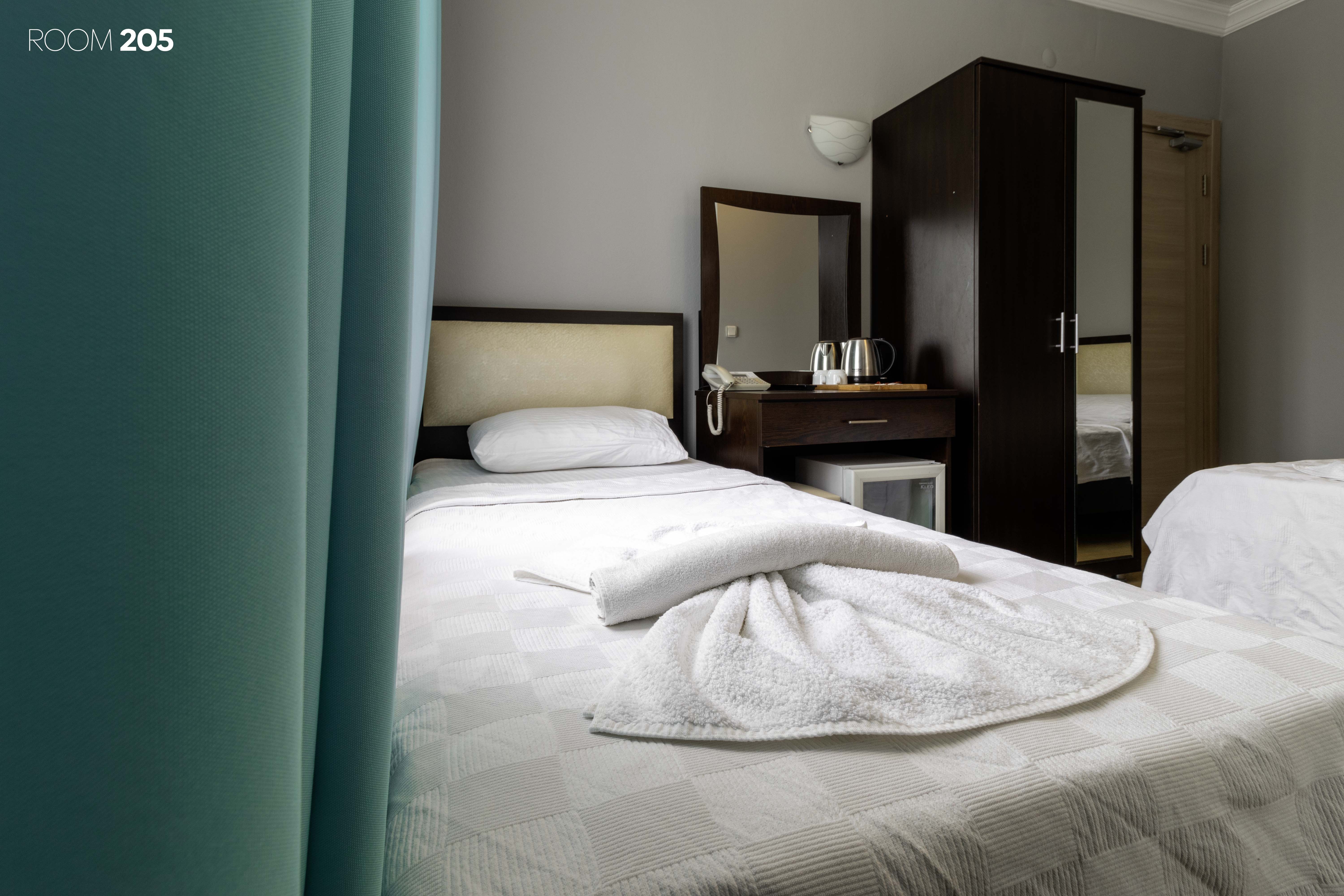 Tüm odalarımızın kendine özel tuvalet ve banyosu bulunmaktadır. Karşılama için kişi sayısına göre odalarımızda elektrikli su ısıtıcı, çay, kahve, şeker ve su bulunmaktadır. Kıyafetlerinizi asabileceğiniz kıyafet dolabı ve askıları mevcuttur. Değerli eşyalarınızı saklayabileceğiniz odaya özel kasalar her odada mevcuttur. El ve yüz havlusu, banyo havlusu, terlik ve ayak havlusu kişi sayısına göre odalarda bulunmaktadır. Her odada sipariş verebileceğiniz ve resepsiyon ile iletişime geçebileceğiniz telefon mevcuttur. Odalarımızın her birinde televizyon mevcuttur. Duş alanları çok sıkışık olmamakla beraber fotoğraflarda gördüğünüz gibi cam bir bölmeyle ayrılmış ve olabilecek maksimum ferahlık sağlanmıştır.