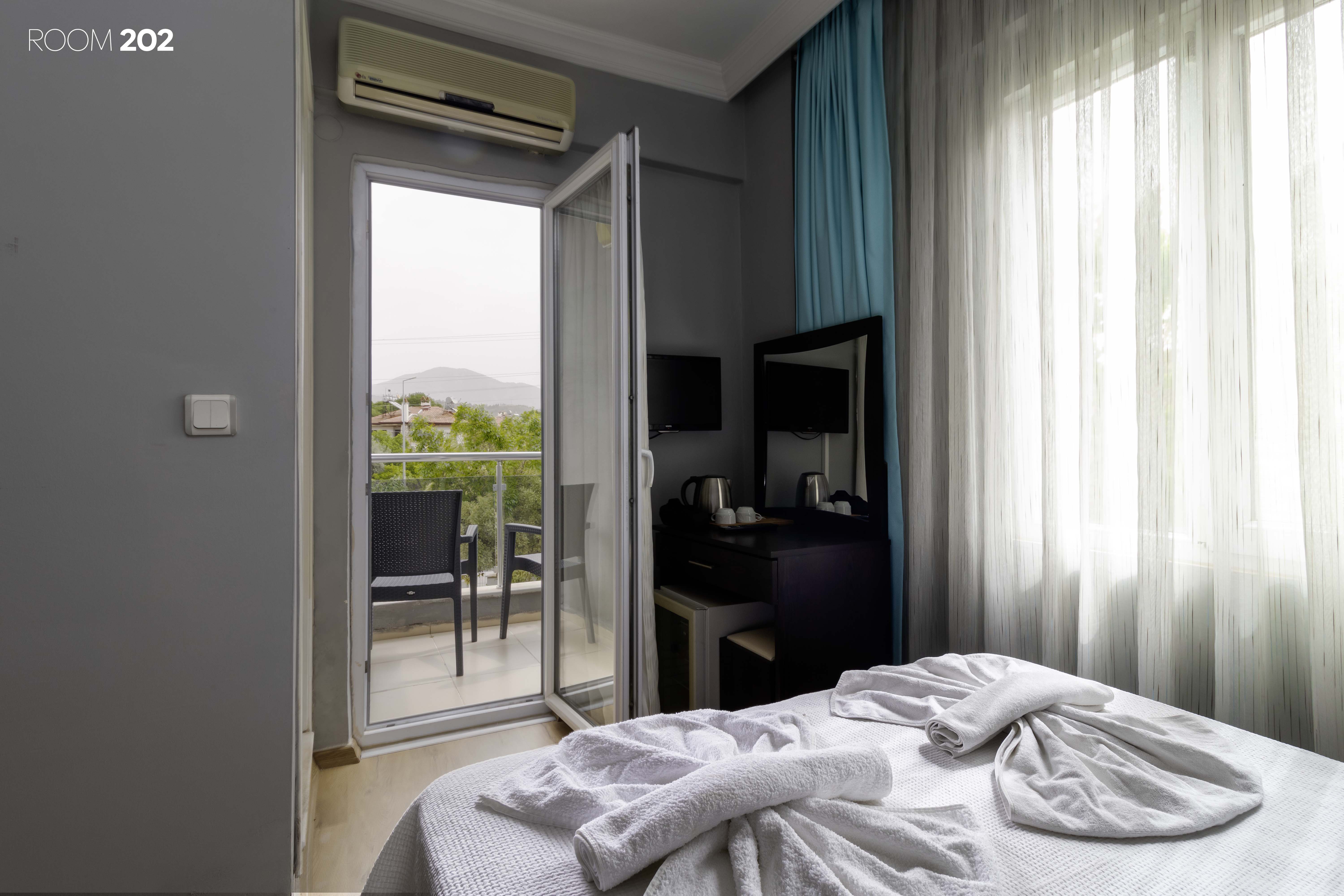 Otelimiz iki dönüm alan içerisine kuruludur. Alan içerisinde bir adet açık havuz bir adet havuz başı kafe bir adet bar bir adet a la carte restaurant mevcuttur. Dalaman havalimanına 45 km uzaklıktadır. Çalış plajına 10 ile 15 dakika (Kişiden kişiye göre değişmektedir) arasında yürüme mesafesindedir. Şehir merkezine ulaşım ve çalış plajına ulaşım oldukça rahat bir şekilde sağlanmaktadır. Dilediğiniz taktirde resepsiyondan çevre turları, yamaç paraşütü ,dalış ve tekne turları hakkında bilgi alabilir ve rezervasyon gerçekleştirebilirsiniz. Haftanın belirli günlerinde ücretsiz olarak bahçemizde kurulu olan açık hava sinemasından yararlanabilir, ailece katılabilirsiniz. Hafta sonları ise çocuklarımız için özel olarak seçilmiş gösterimlerede katılabilirsiniz.