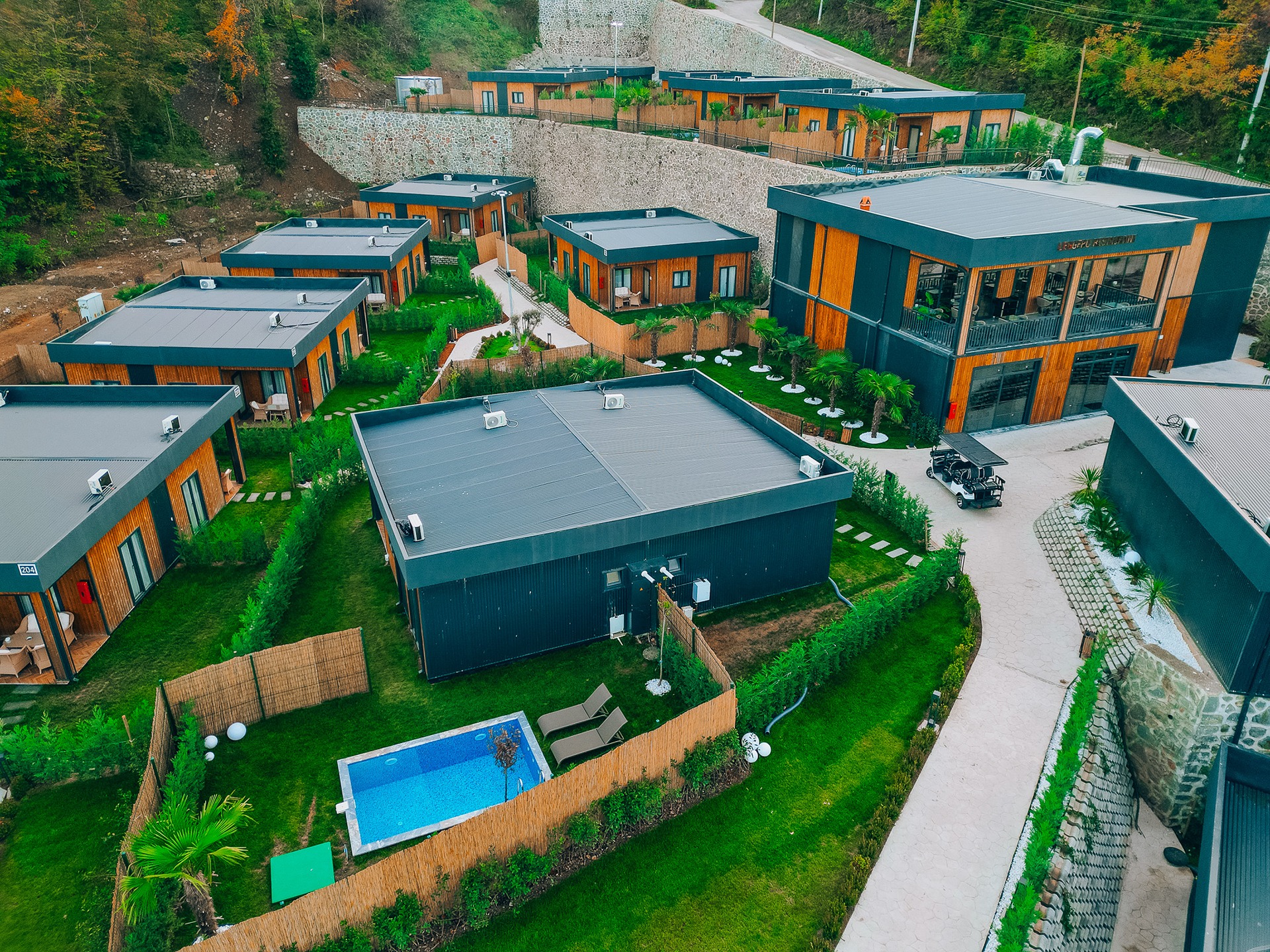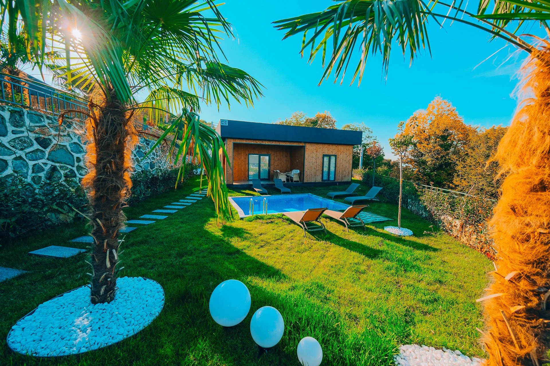 2+1 Villa, Göl Manzaralı, Isıtmalı Özel Havuzlu evlerimiz 90 m2 olup 1 salon ve 2 yatak odasından oluşmakta 5.kişi için salondaki kanepe ek yatak olarak kullanılmaktadır. Evlerimizin kendisine ait özel ısıtmalı havuzu, bahçesi, bahçe mobilyası içerisinde jakuzi, şömine, oturma grubu, televizyon, yemek masası, kettle, çay-kahve ikramlıkları, wc, banyo, saç kurutma makinesi, yerden ısıtma, klima, fiber internet bulunmaktadır.