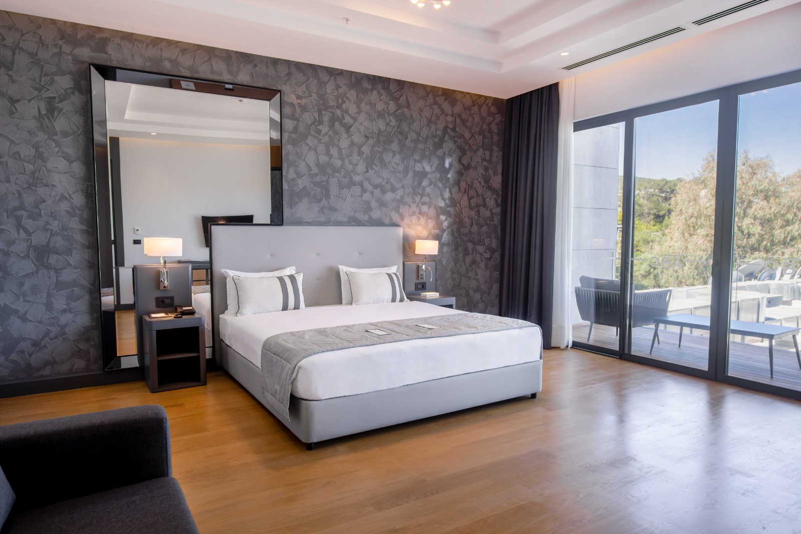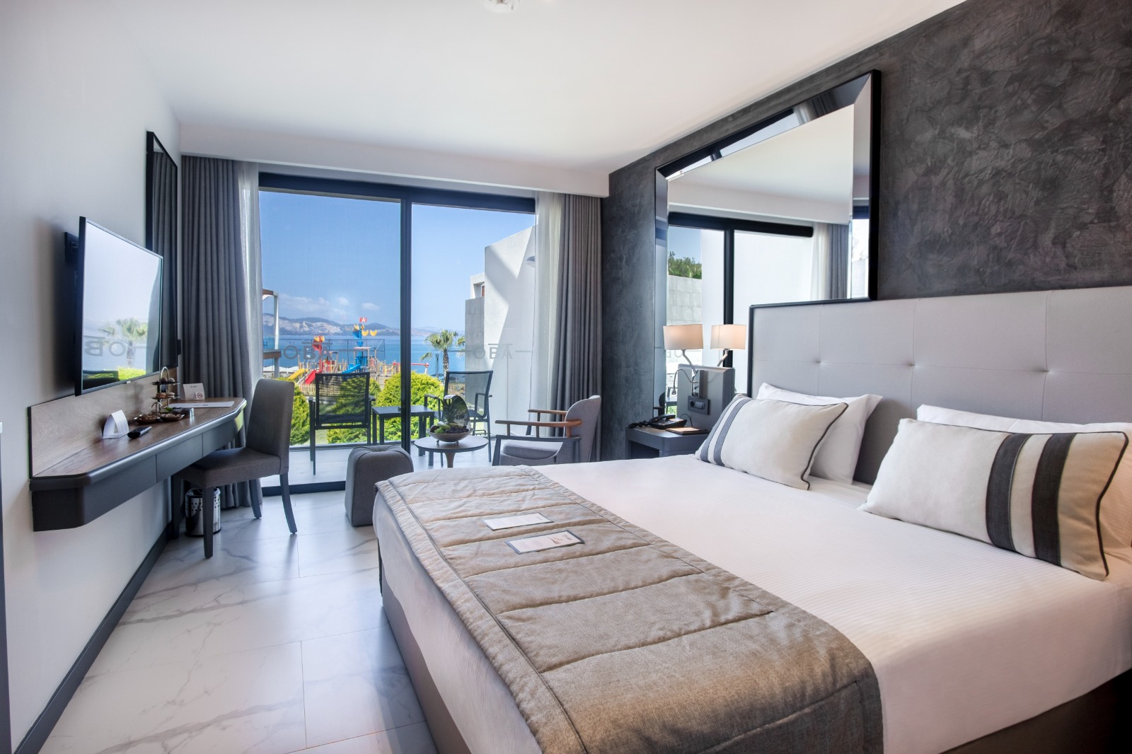 Otelimiz, hem deniz ve gökyüzü mavilerini hem de içerisindeki çağdaş sanat detaylarıyla, peyzaj ve ormanı bir arada sunuyor.